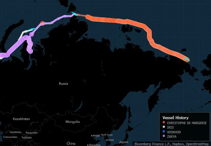 Суда Iris и Voskhod, которые перевозят грузы с завода Arctic LNG 2 в Сибири, начали путешествовать в Северную Азию по Северному морскому пути 15 августа после того, как простаивали в течение нескольких недель, согласно данным отслеживания судов, собранным Bloomberg. Два других танкера, которые недавно были загружены на заводе, также начали движение в Азию на прошлой неделе.